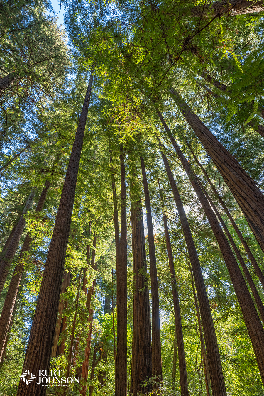 Kurt happened to be in California already when the request for the image came in, so he added redwood groves to his shooting list, searching for just the right tree for the project: one that captured the scale and vertical drama needed for the concept.