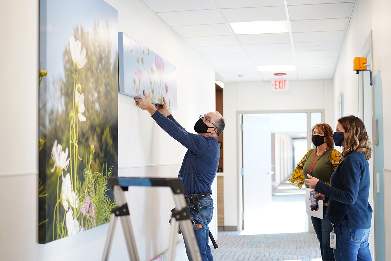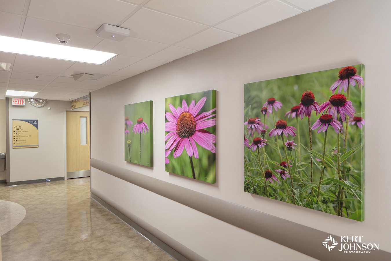 - Coordinating flower images brighten the hallway of this Allina hospital in MN.