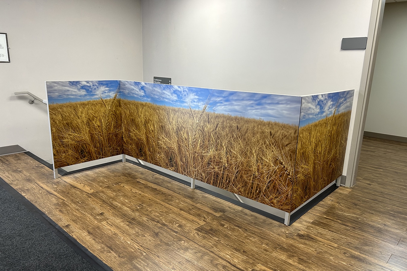 Our canvas corner wraps are another example of unexpected art placement. These custom-built canvases wrap around corners, producing seamless visuals bursting with color and creative design. This refreshing and unexpected display is the perfect solution for creating moments of awe in healthcare environments.