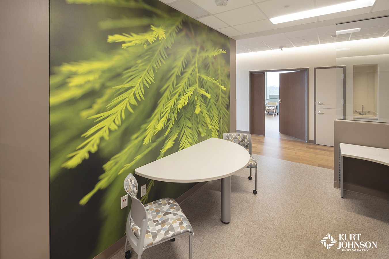 - Aurora Medical Center, Mount Pleasant, WI. Type II Vinyl Wallcovering by Koroseal. Image by Kurt Johnson.