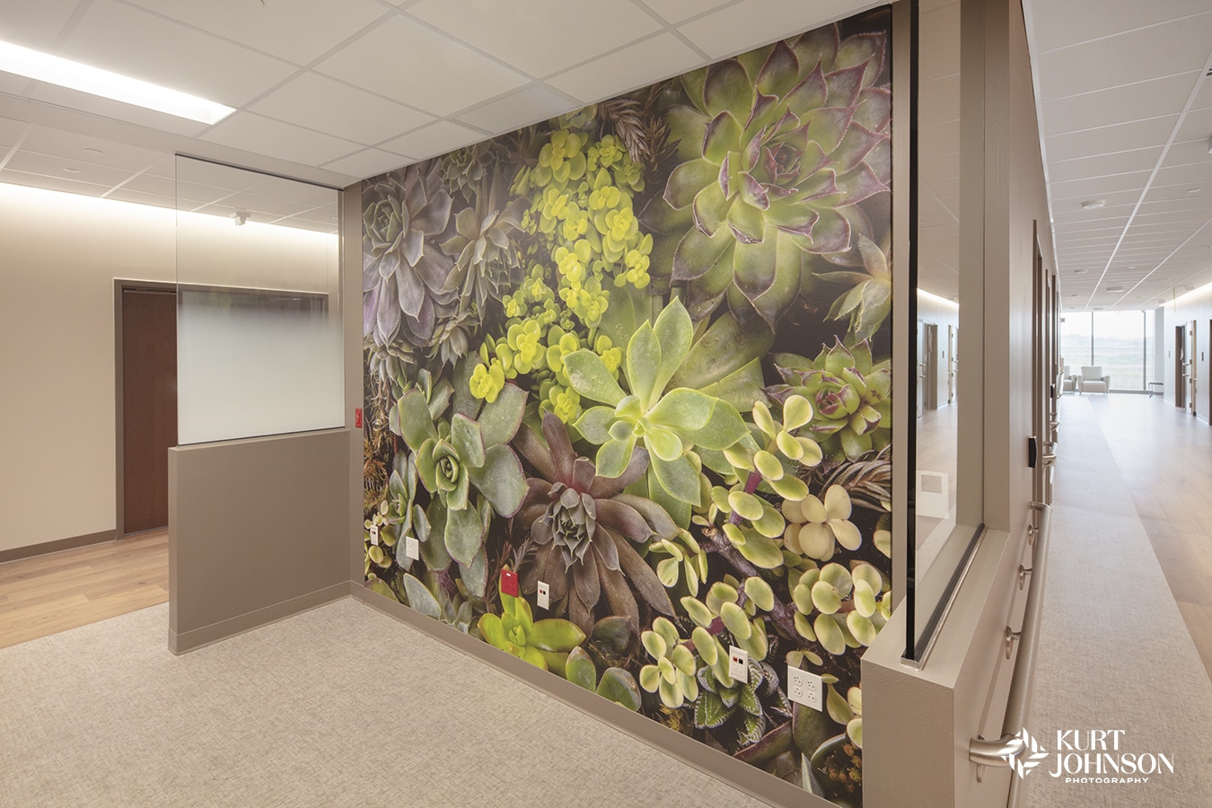 Choosing nature images of lush plant life and living walls for hospitals and clinics.