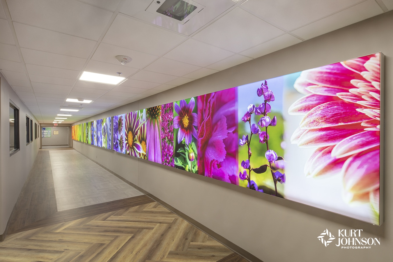 We recently installed a 90-foot nature walk in the basement of CHI Immanuel Hospital using this system, turning a previously overlooked hallway into a destination for patients, visitors, families and staff. Choosing the right substrates for healthcare environments can be surprising sometimes, and REX Frames are definitely an example of how that can be a good thing.