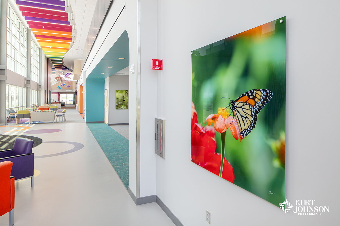 A lot goes into choosing the right substrates for healthcare environments: the type of environment, where the art will be placed, and if it needs to serve multiple purposes, like wayfinding or creating privacy. Fire alarms, TVs, and lighting also need to be considered. Is there natural or overhead lighting? Maybe no lighting at all (been there, and yes, there’s a solution for even that!).