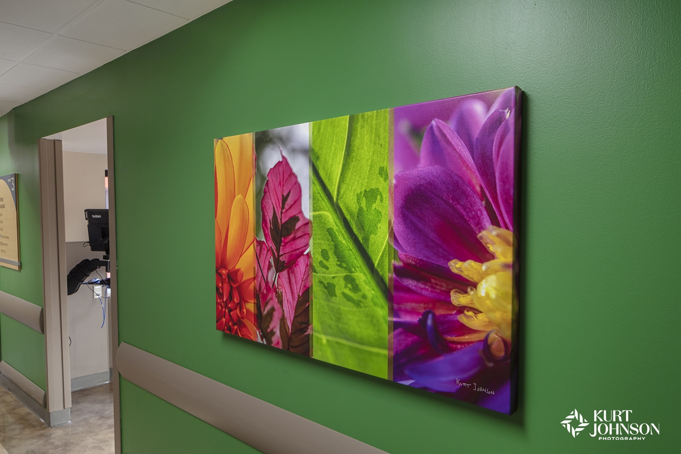It’s no secret – kids like color! Instead of just hanging a photo or two by the check-in area, Omaha Pediatric Therapy transformed the entire wall of the reception area using a rainbow of Kurt’s nature photographs.