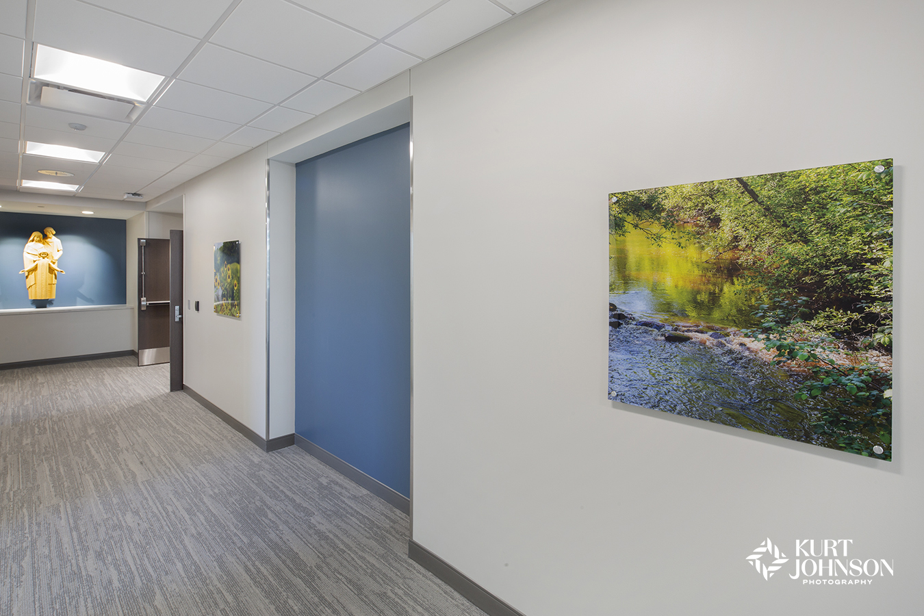 I was photographing an installation in a Minnesota hospital many years ago. It was after hours when I walked into an infusion area of the cancer treatment center and saw three of our large, framed photographs on the wall. No windows. Just three chairs, curtains, and three of our nature images.