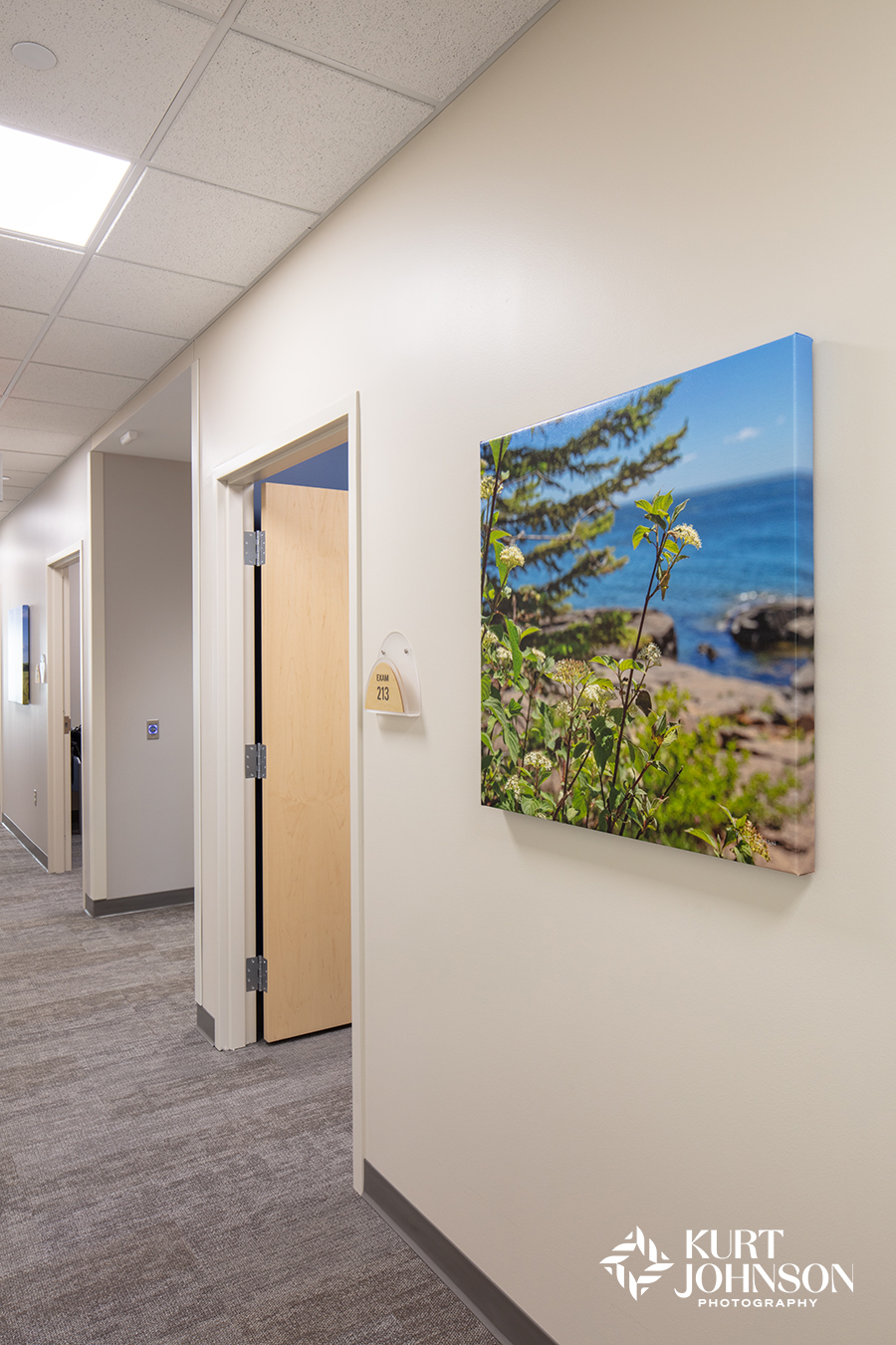“We chose Kurt Johnson Photography to partner with us on making sure we have local landmarks so when you come into the space, you’ll recognize some of our North Shore images with the lupines and other true Minnesota landmarks.”