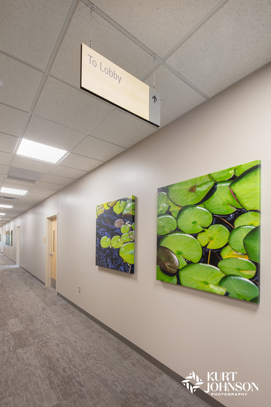 KJP’s color slices take multiple local images and create cohesive focal pieces to serve as positive distractions down long corridors.