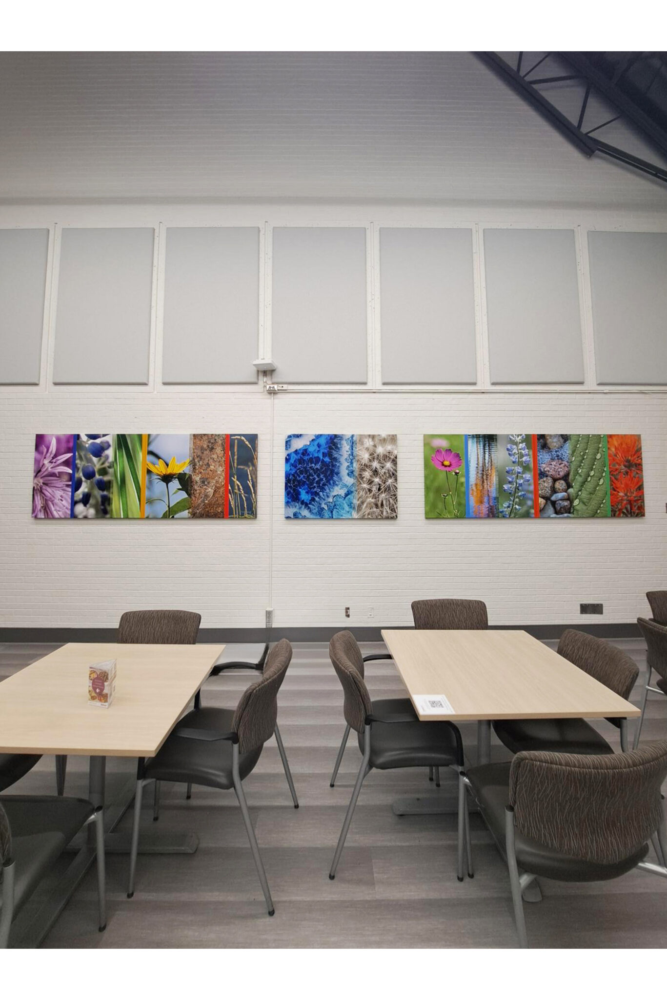Each piece was triple-coated with a laminate (10% bleach cleanable for healthcare) and reinforced with medium-density fiberboard backing for extra support and longevity, because beautiful art should be as durable as it is calming.