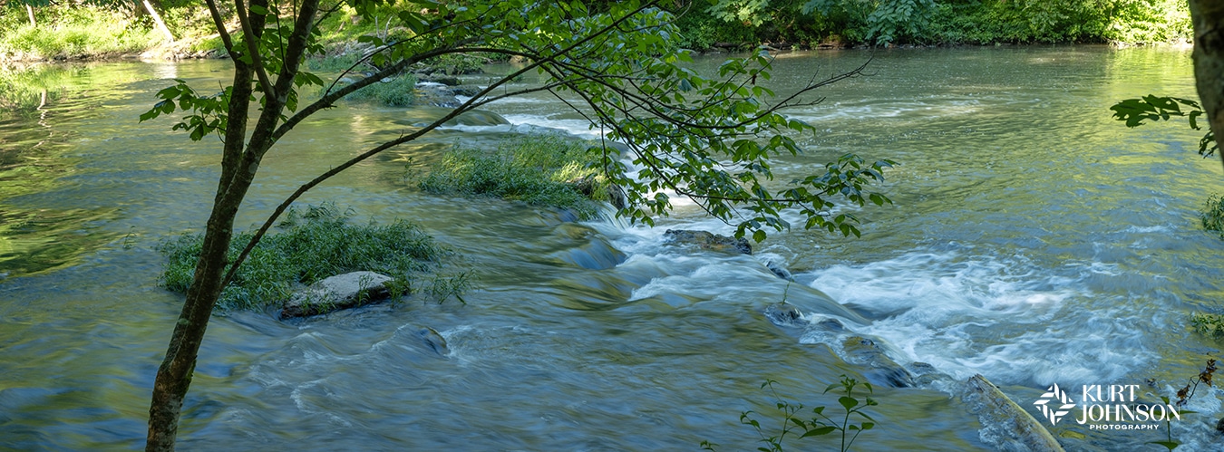 While photographing a small-town park that was on our itinerary, we both heard a soothing hum in the background. We thought it might be the sound of cars moving across a nearby highway, but the more we searched, the more it sounded like running water.
