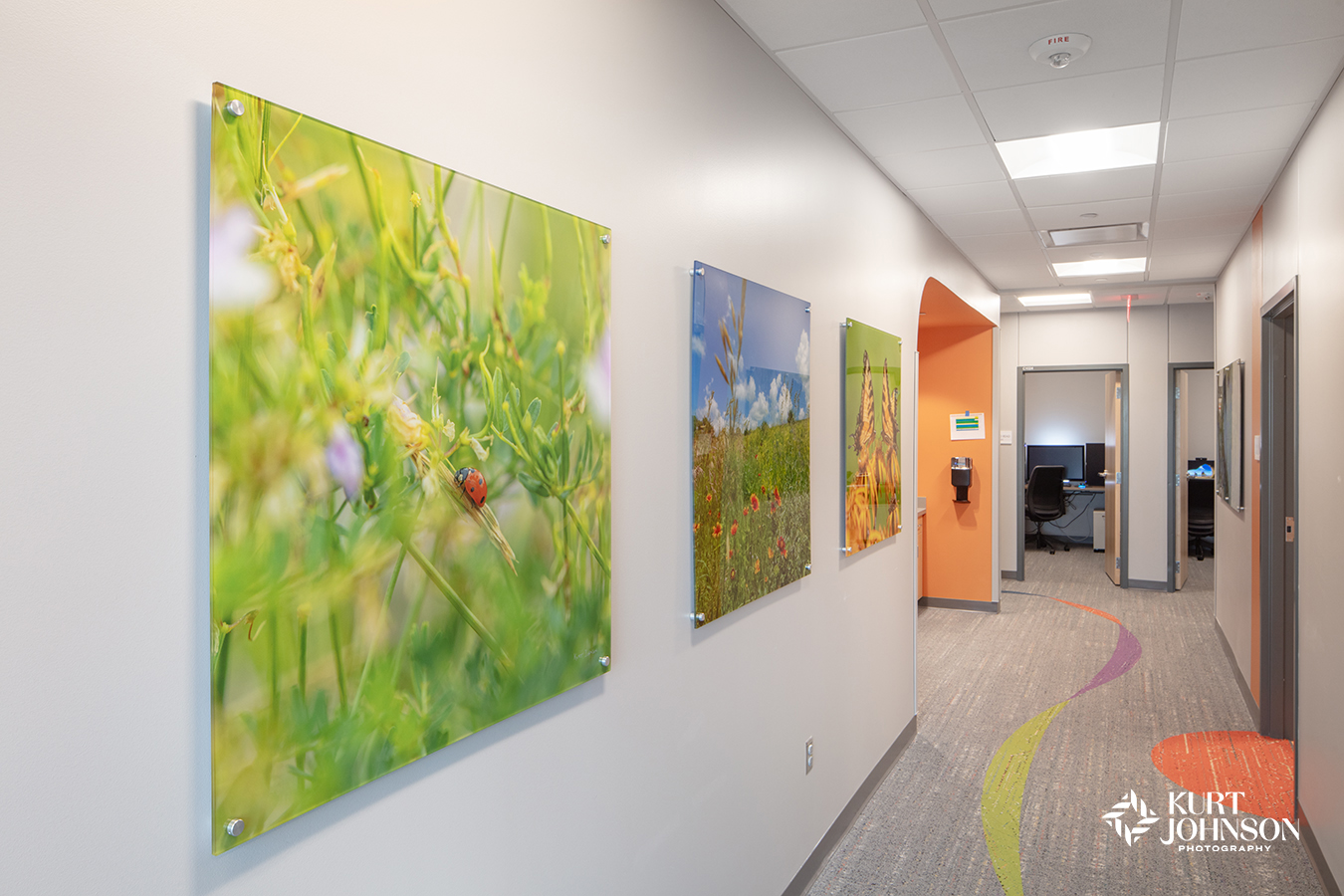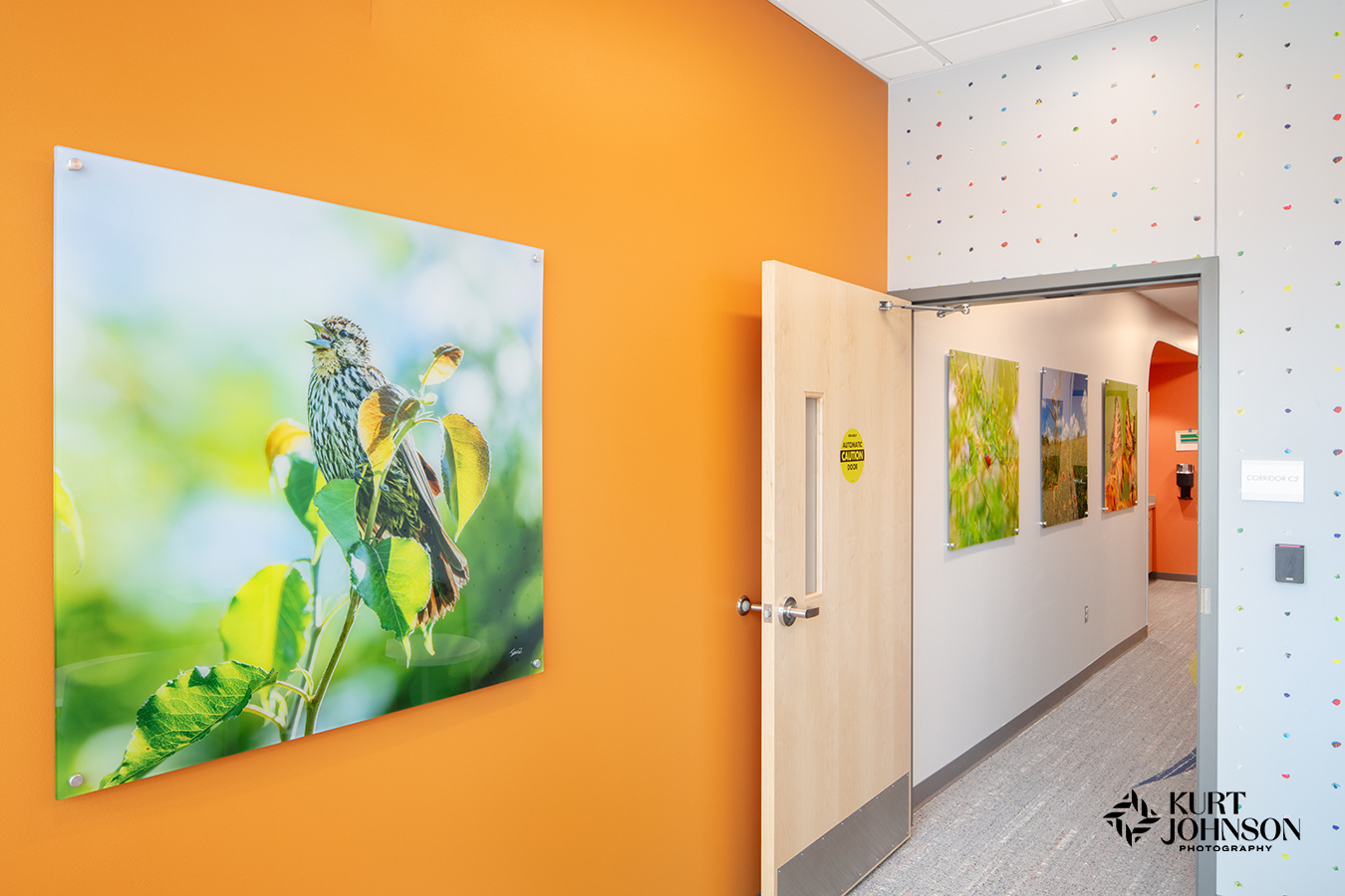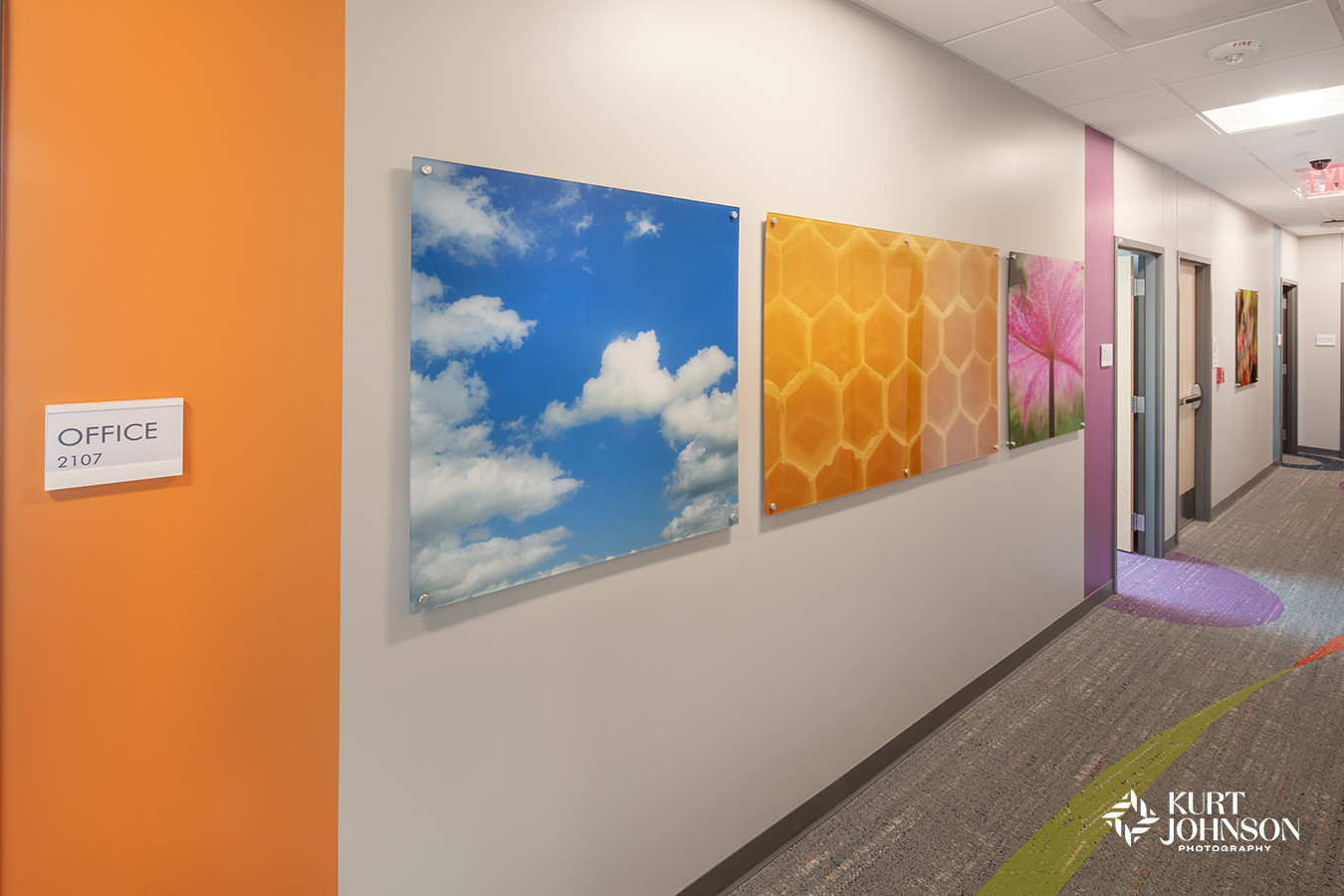 Like most ground-breaking projects, pediatric hospital design requires all hands on deck. And Children’s Nebraska – West Omaha was a collaborative effort by some of the area’s most cutting-edge providers. JE Dunn Construction built the impressive facility and Altus Architects Studios handled the vivid design including wallcoverings, carpet, and the incorporation of Omaha Children’s Medical Center’s iconic umbrella sculptures. Soraya Consult Group rounded out the design with playful furniture and the inclusion of KJP’s healing nature photography. And we had a fantastic time working with Jeff Sorensen of CBRE Project Management and Christi Colbert, BSN, RN, CPN, CNML, AMB-BC, Manager of Children’s Specialty Pediatric Outreach Clinics.