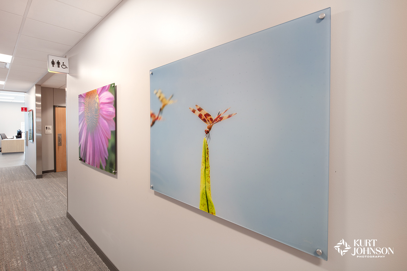 Over 160 acrylic images were printed and installed by Renze throughout the facility. Acrylic provides a vibrant display while also having the benefit of being able to be easily cleaned to keep surfaces sterile and safe.
