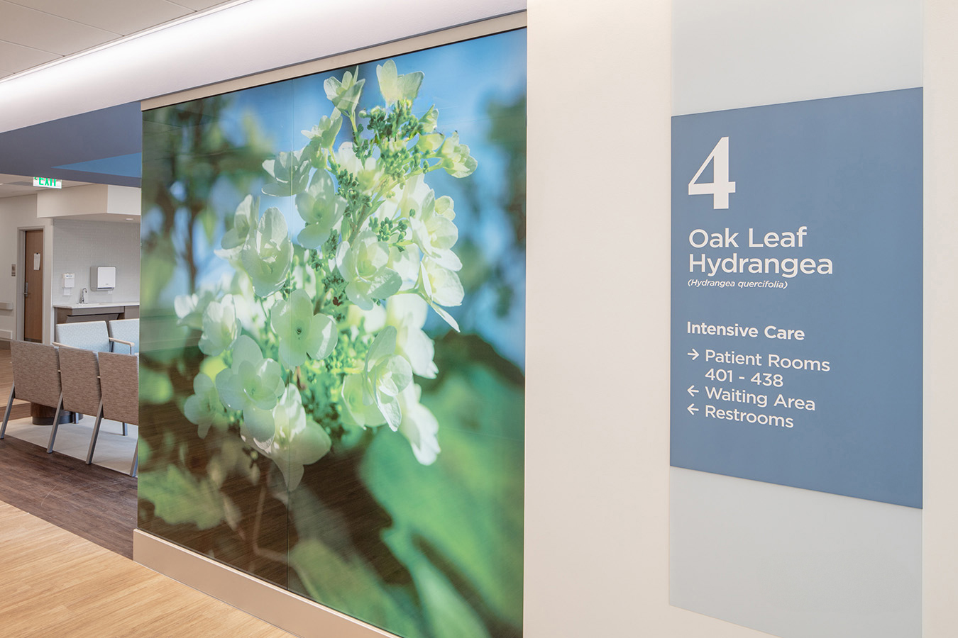 Simple strategies, like using landscape photography to define areas or highlight key transitions, can help people instinctively know where they are and where they need to go, all while providing moments of beauty that uplift patients, families, and staff.