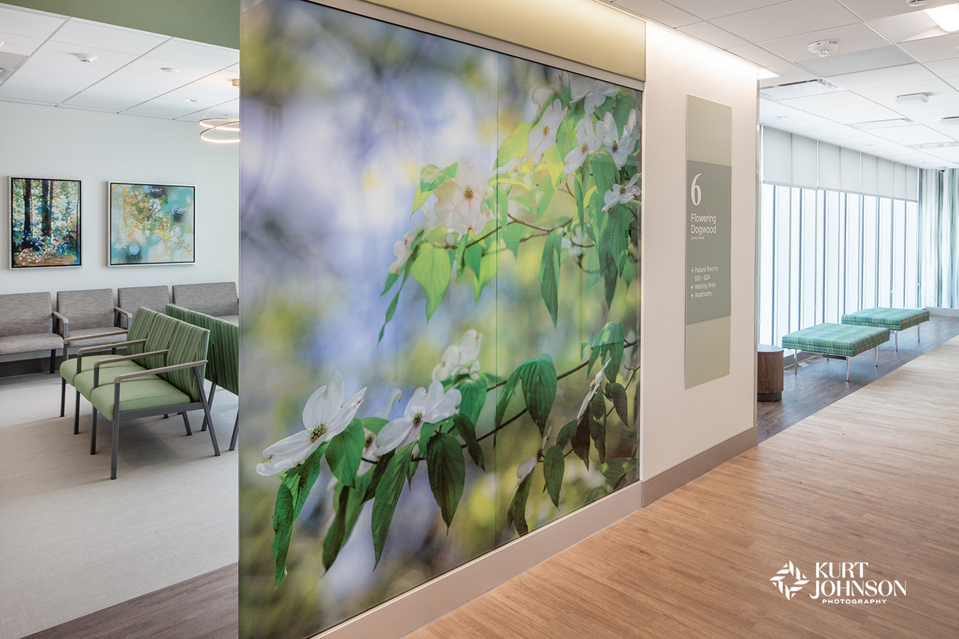 Across the country, healthcare designers are using nature imagery not only to bring beauty into their spaces but also to support intuitive wayfinding. Here are two recent installations that show how thoughtful artwork selection, from curated collections to fully custom commissions, make a meaningful difference in the patient experience.