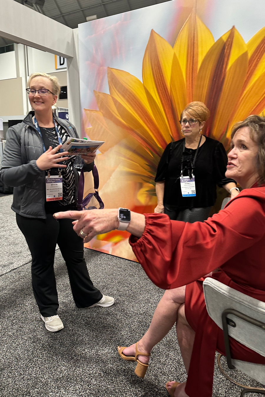 The conversations at HCD reinforced something we’ve always believed: every detail in a healthcare space matters, from signage and color to the art on the walls. Nature photography doesn’t just look pretty (although it does that too!).