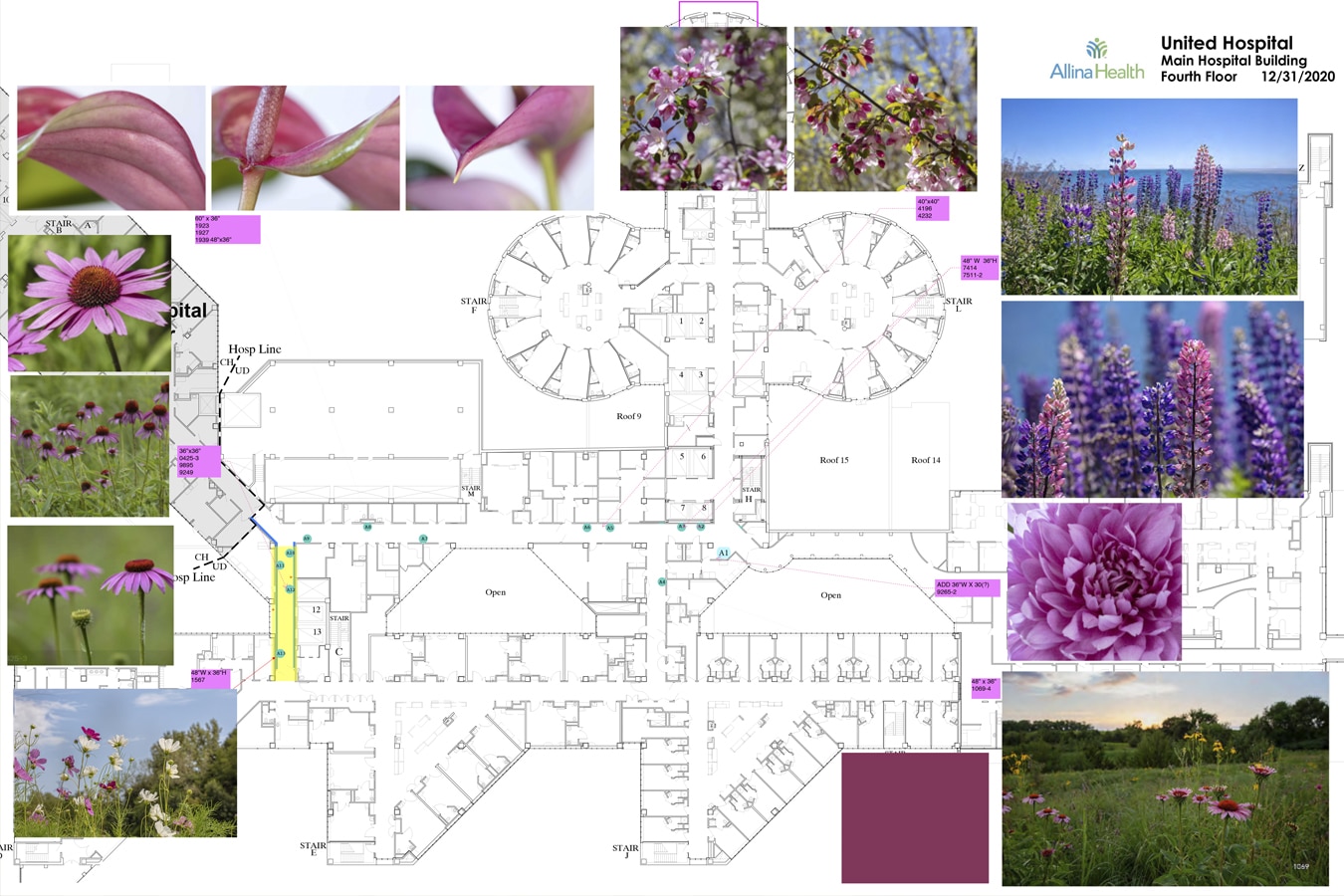 Together, the colors and imagery create a soothing rhythm throughout the hospital, a visual language that gently guides patients and staff while reinforcing Allina’s mission of comfort and care. Click here to see more photos from this breathtaking installation.